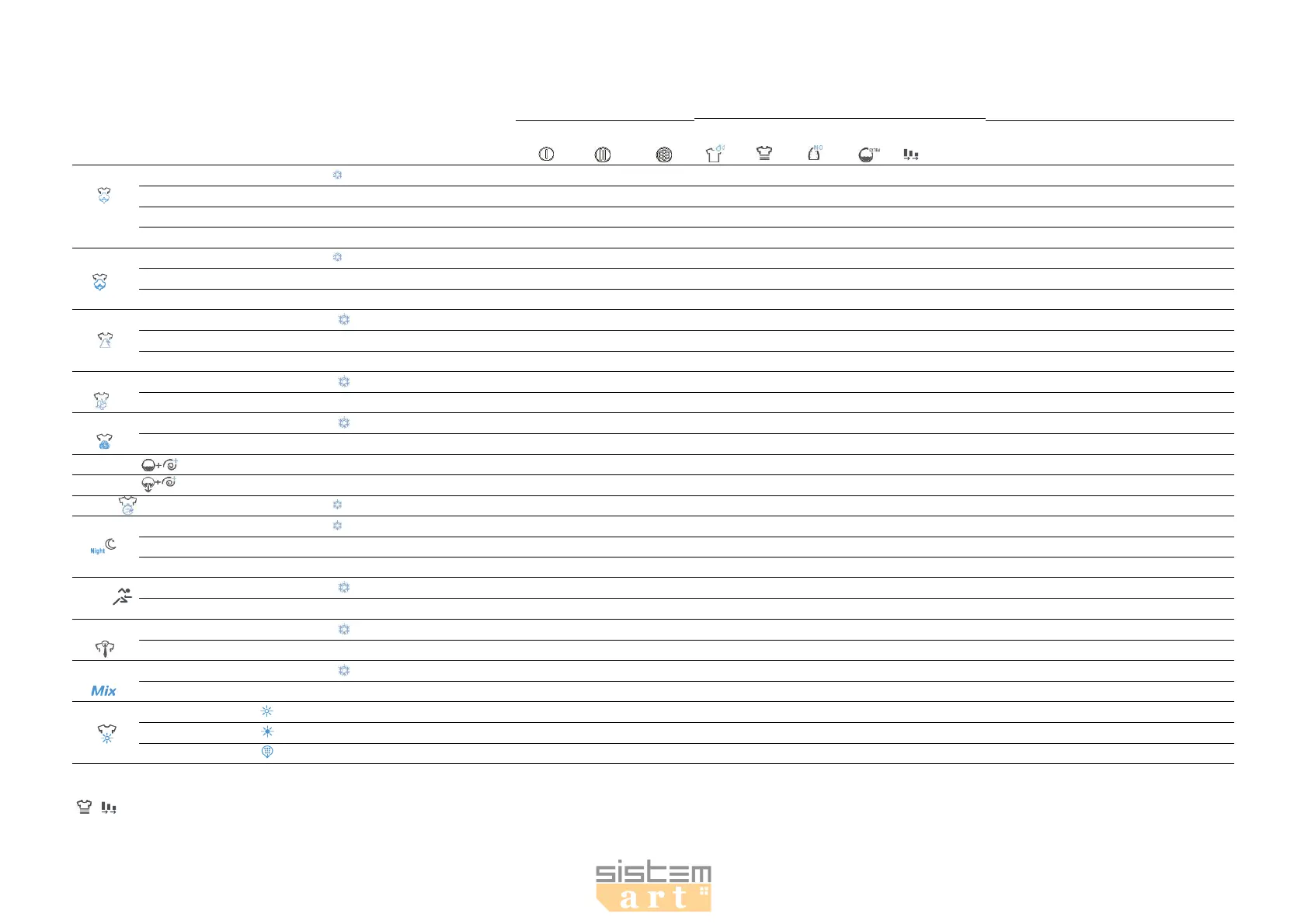 Prewash Wash Softner Prewash Intensive Easy Iron Extra rinse