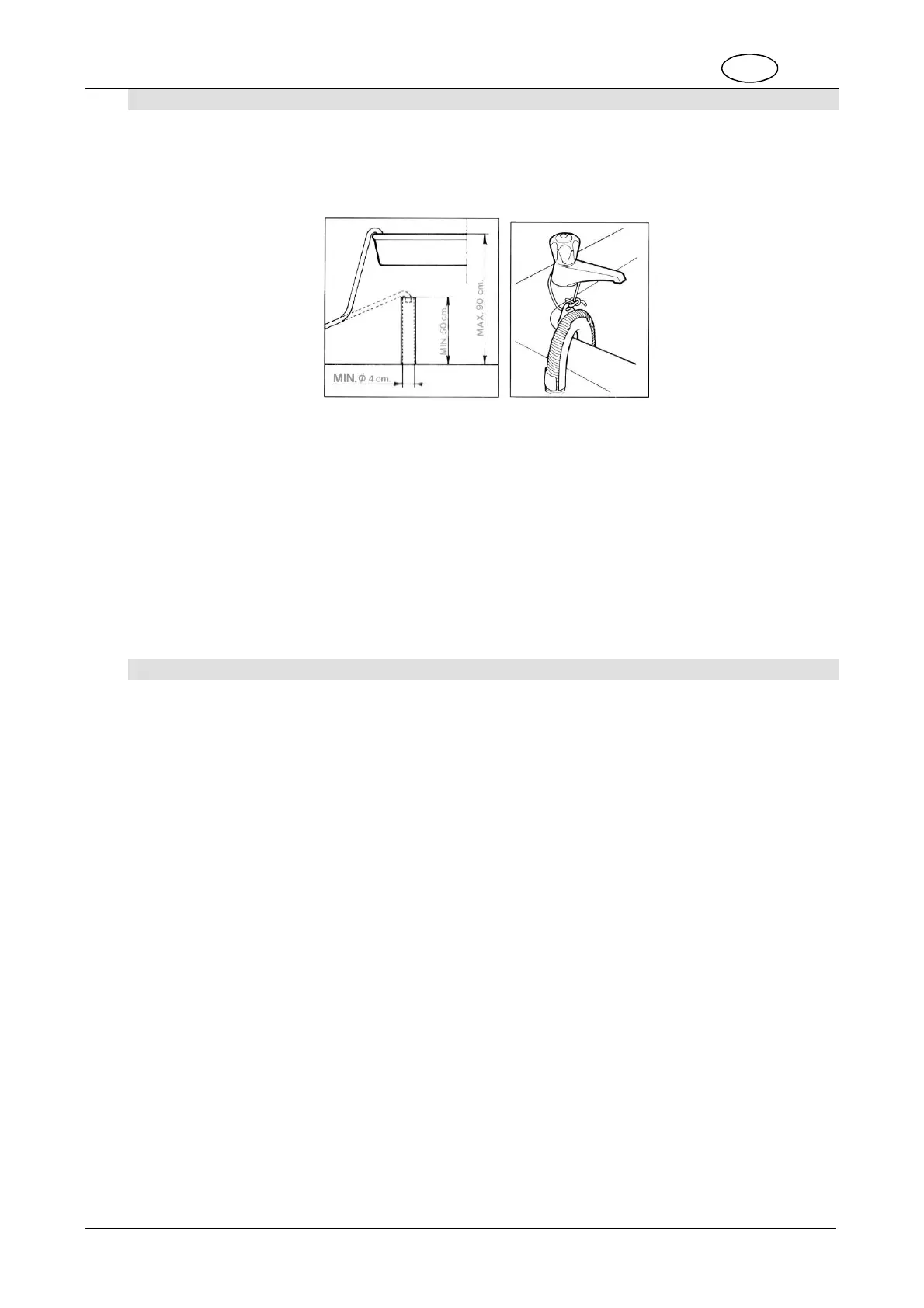 2. In all cases, check that the end of the drain hose is securely fixed to prevent the