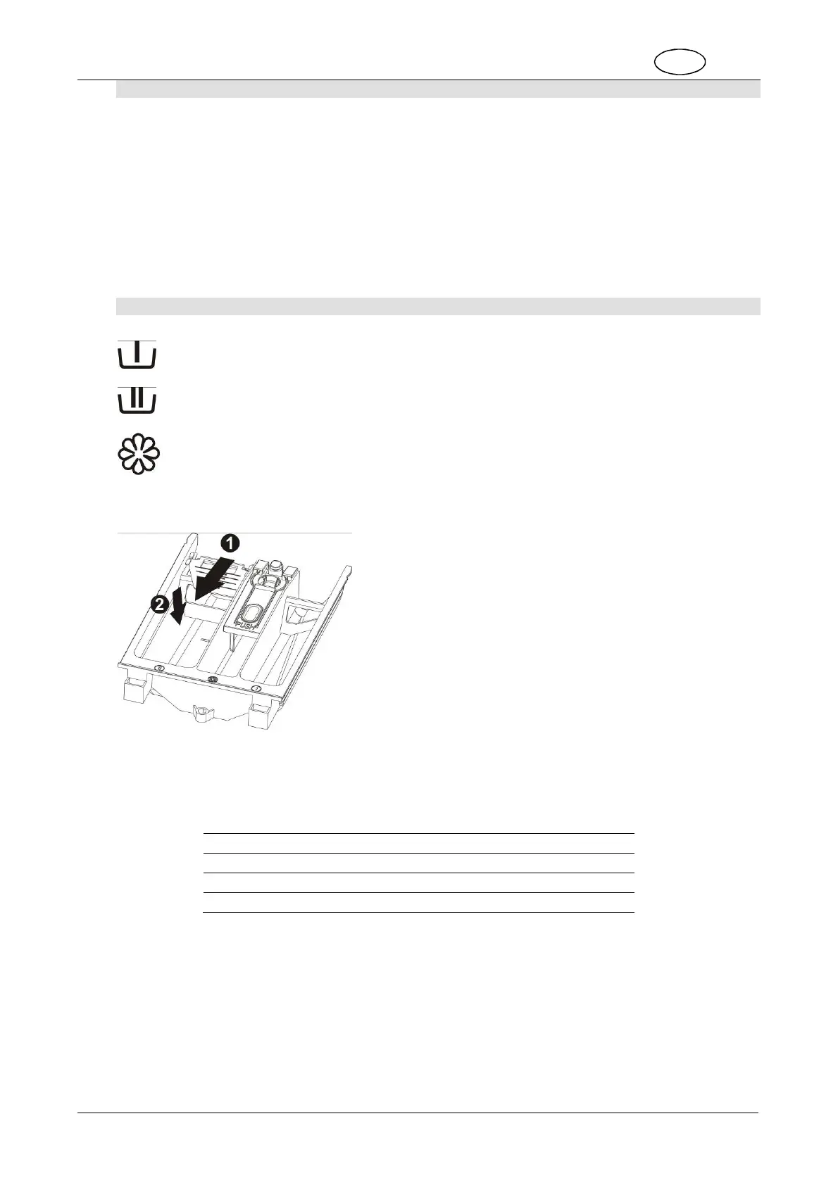 The main wash detergent compartment has a tang allowing the use of liquid detergent. To insert it, pull it towards