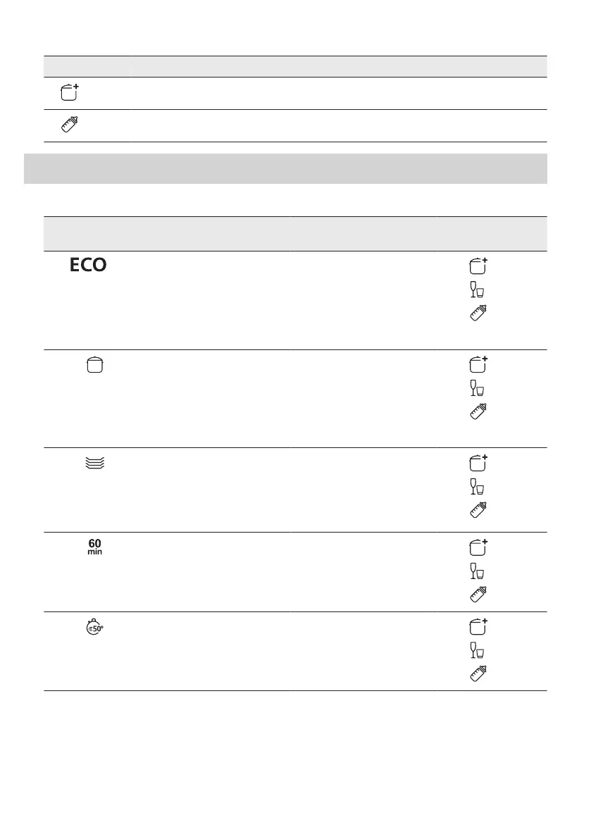 The order of the programmes in the table may not reflect their sequence on the control panel.