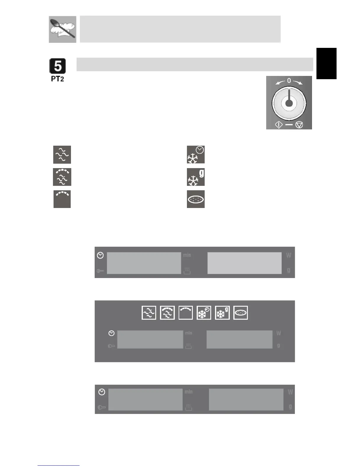 microwave, and is also used to select a cooking