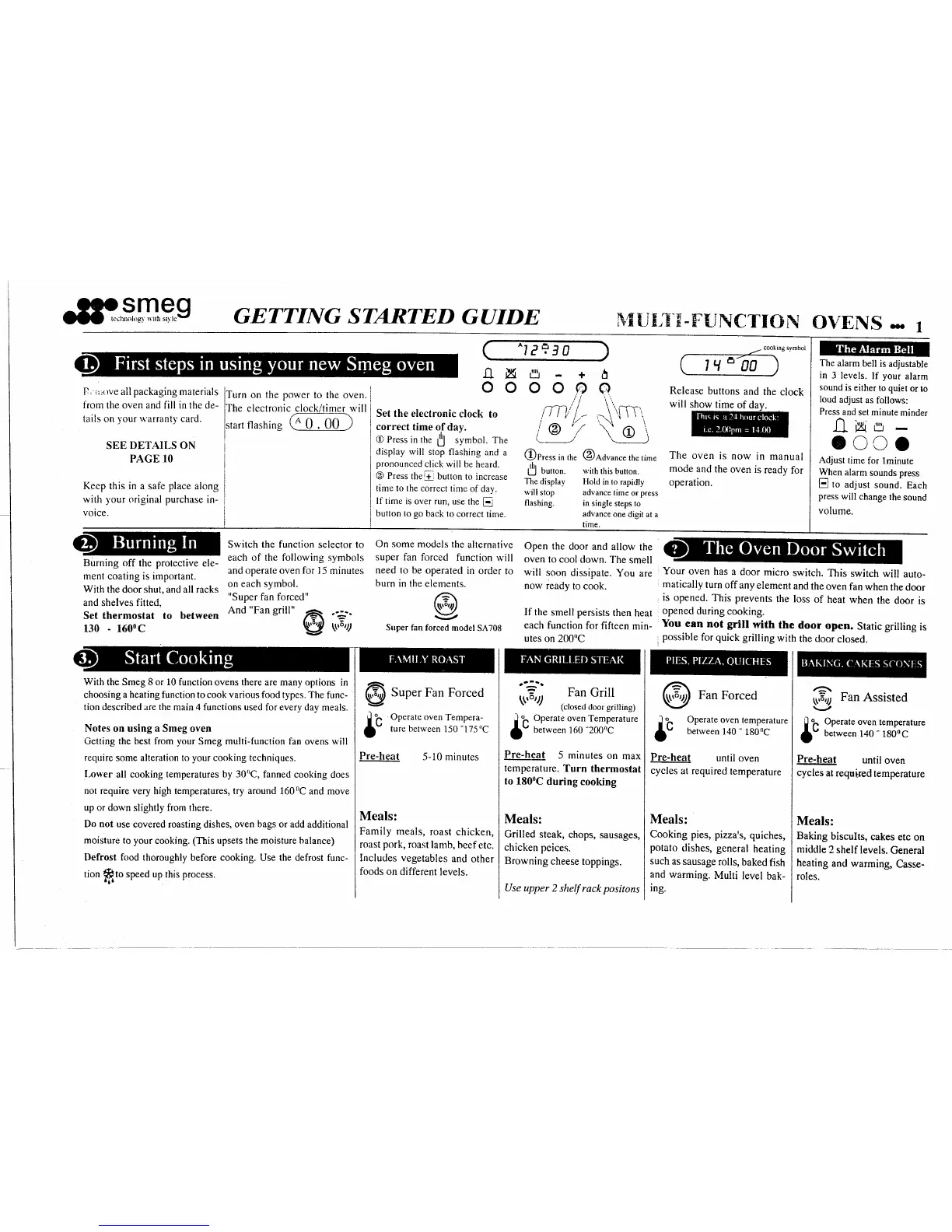 Smeg Multi-Function Built-In Oven - Getting Started Guide; First Steps in Using Your New Smeg Oven; Burning In; Start Cooking