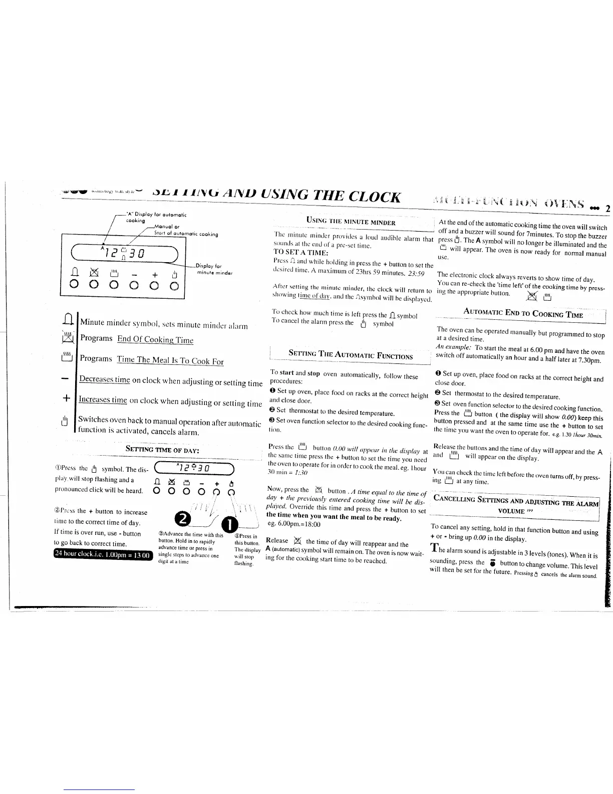 Smeg Multi-Function Built-In Oven - Setting and Using the Clock; Using the Minute Minder; Setting the Automatic Functions; Automatic End to Cooking Time