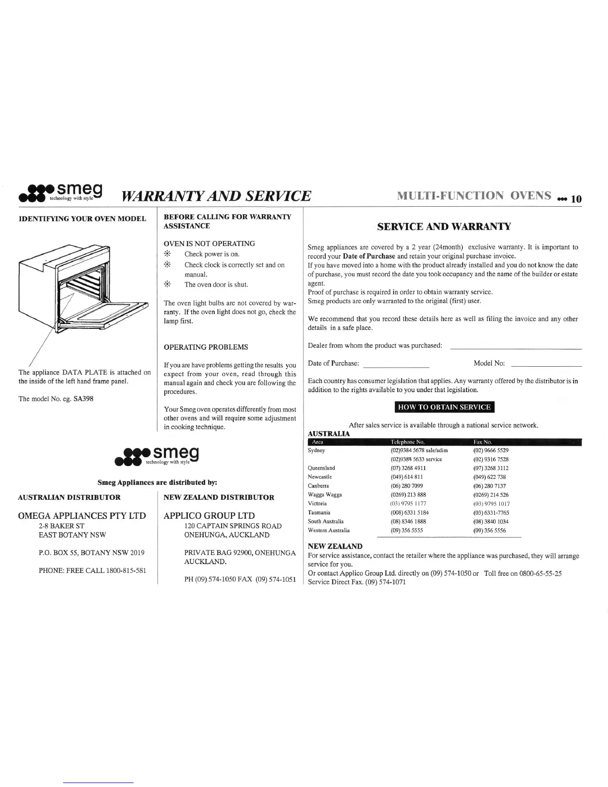 Smeg appliances are covered by a 2 year (24month) exclusive warranty. It is important to