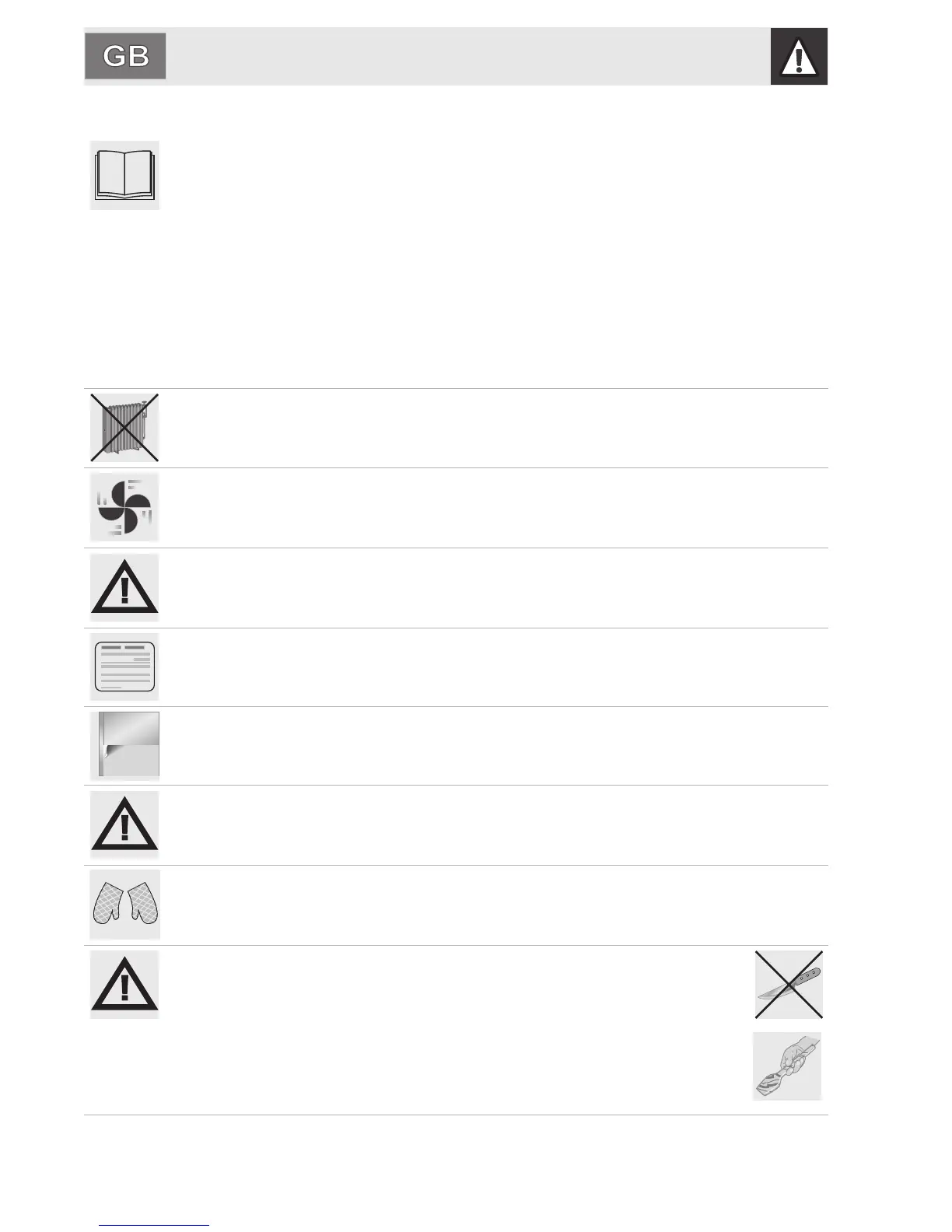 THE APPLIANCE BECOMES VERY HOT INSIDE DURING USE. SUITABLE HEAT-