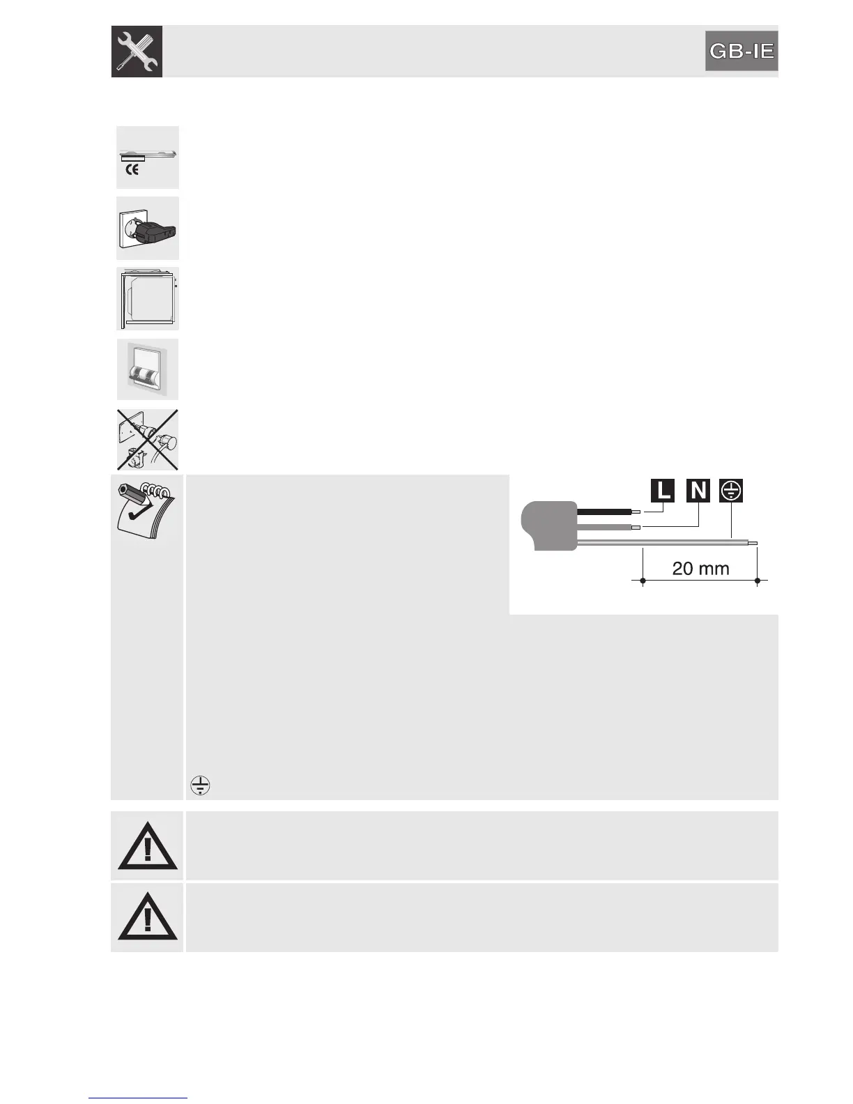 The plug at the end of the supply cable and the wall socket must be of the same