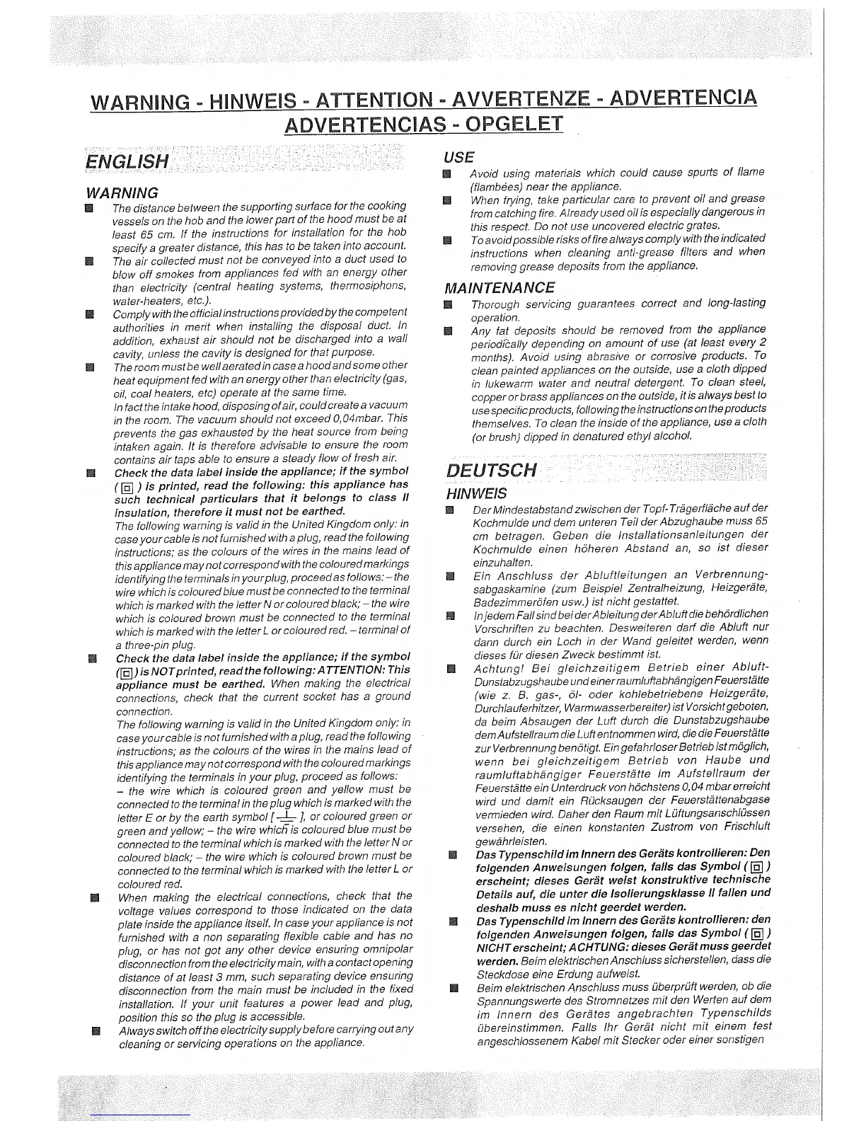 Smeg P52/2 - WARNING; USE; MAINTENANCE