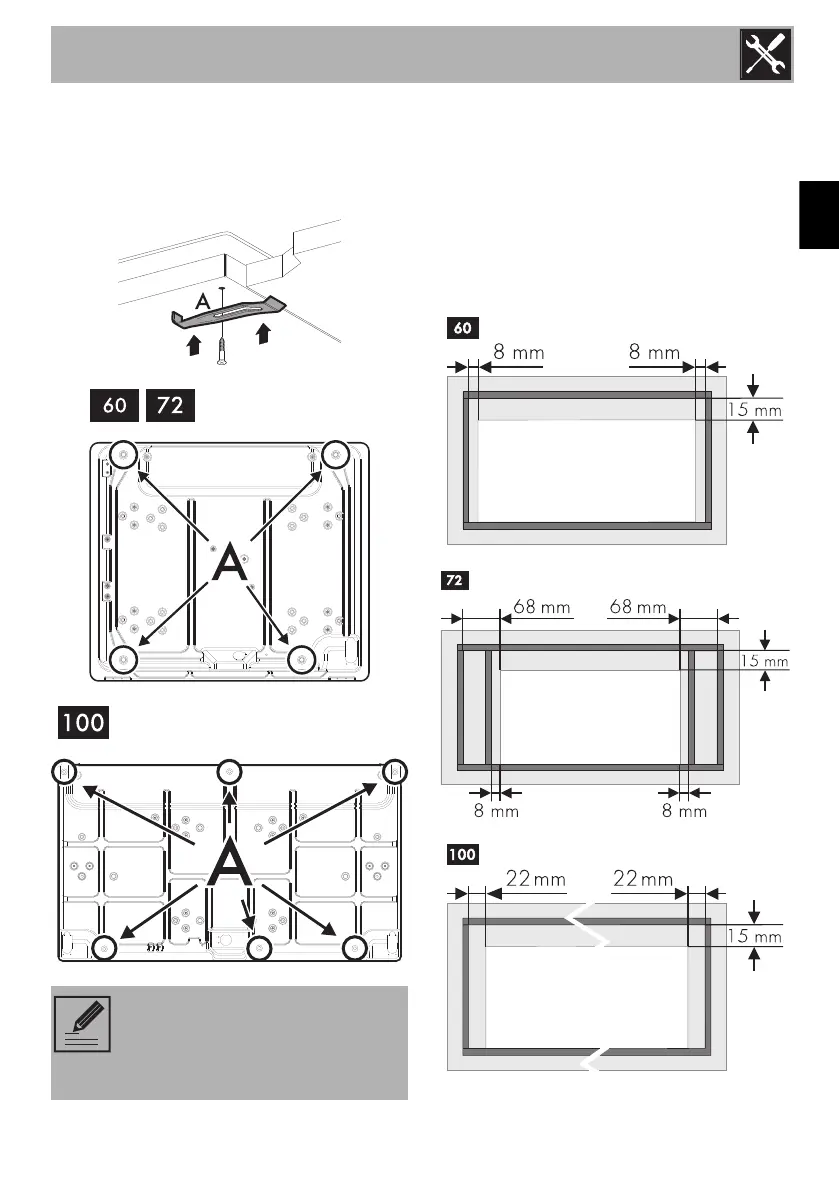Screw the fixing brackets (A) into the holes