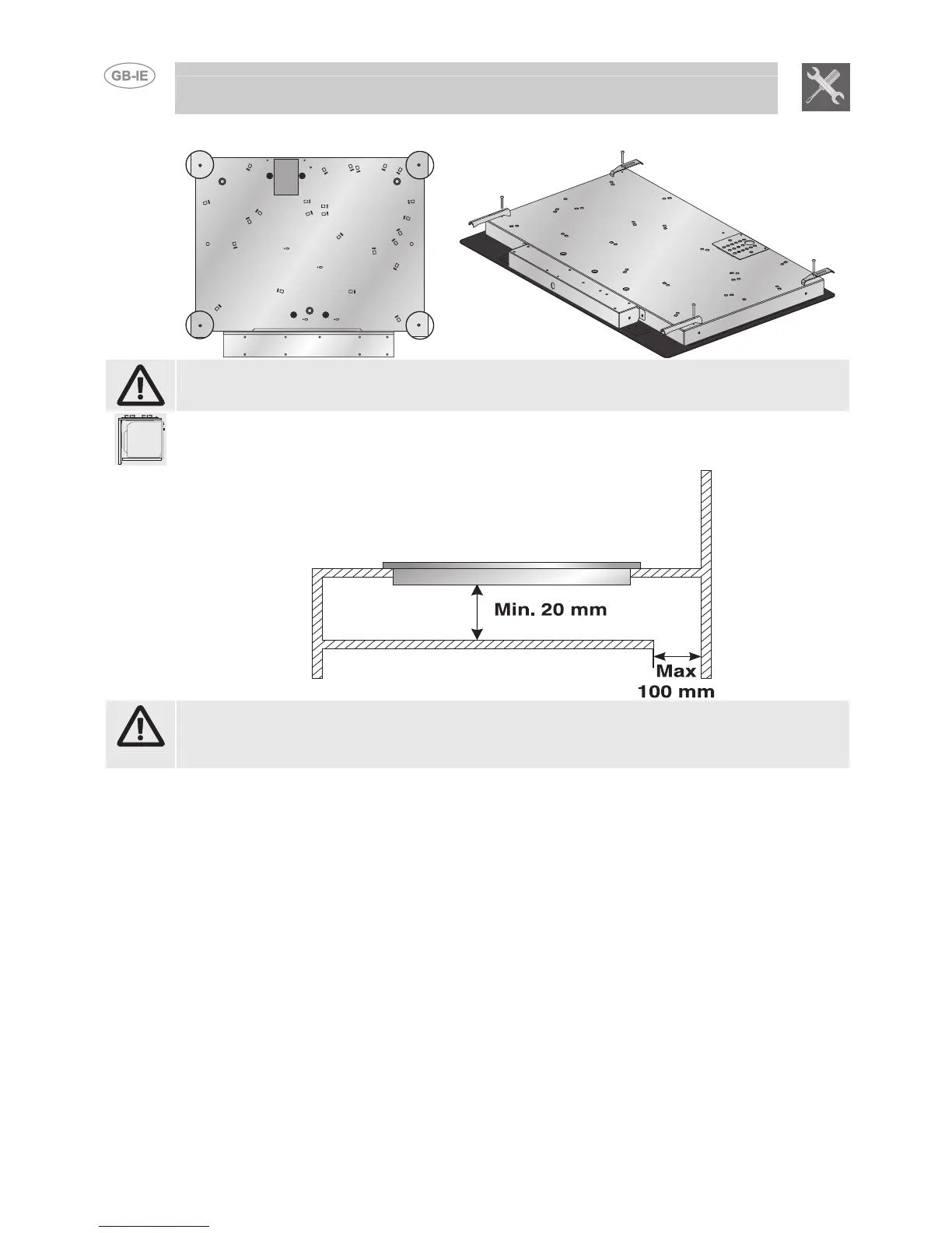 Installation of an oven without cooking fan underneath the hob is forbidden.