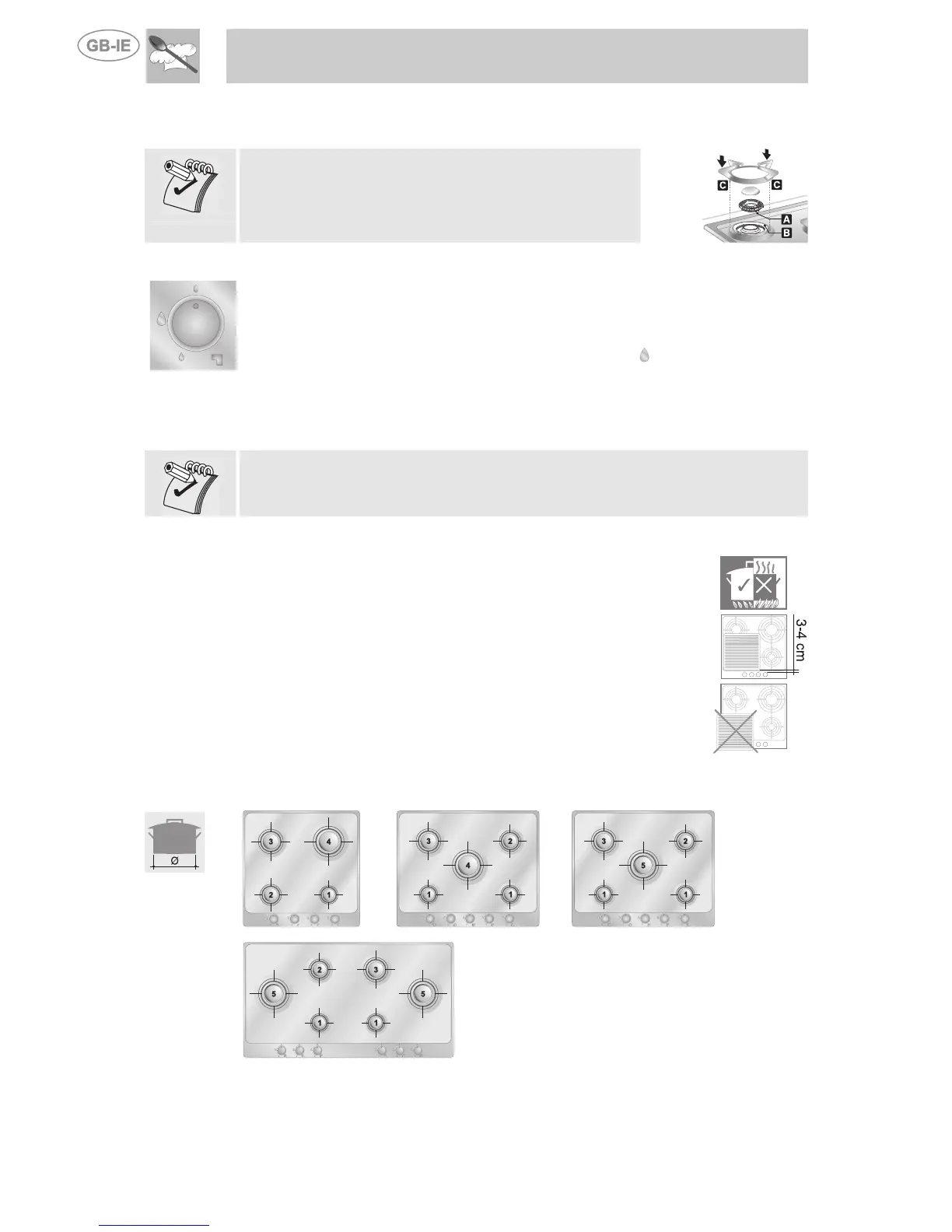 recipients or griddles must be positioned within the cooking hob