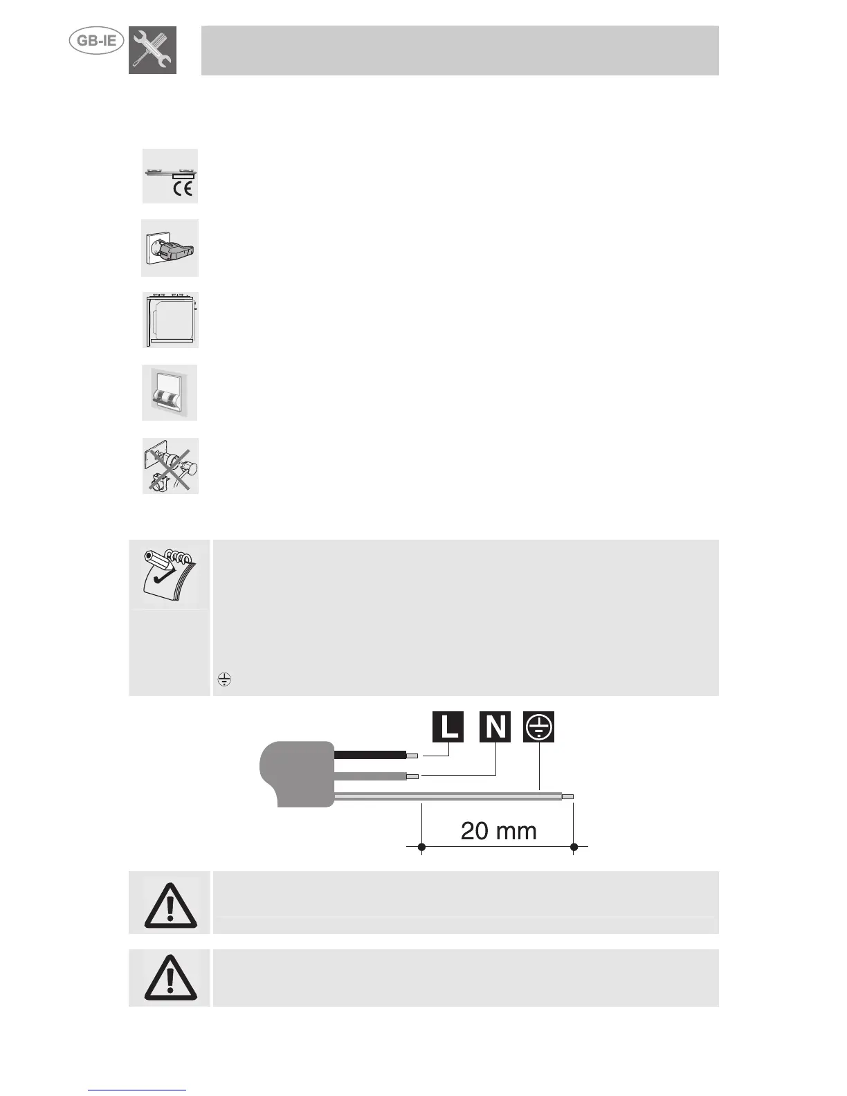 must have the ground wire (yellow-green) longer by at least 20 mm. Use only