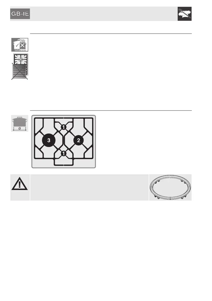 To prevent burns or damage to the hob during cooking, all pans or griddles must