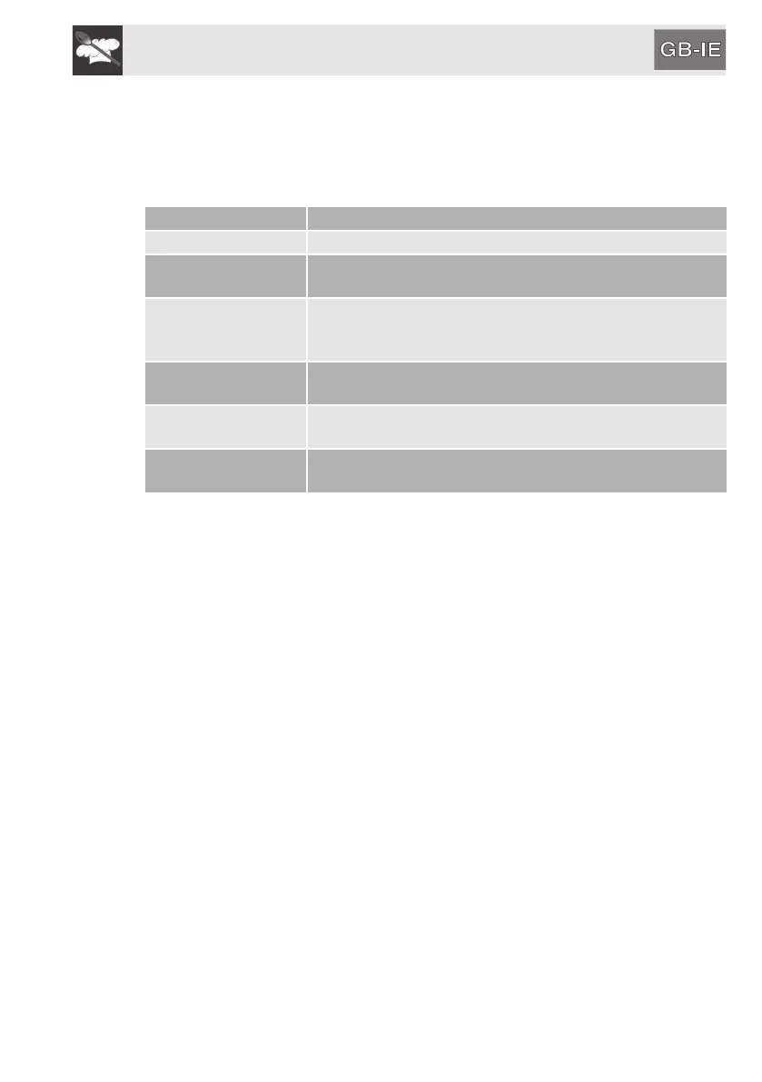 The table below shows the power values which can be set, with the relative type