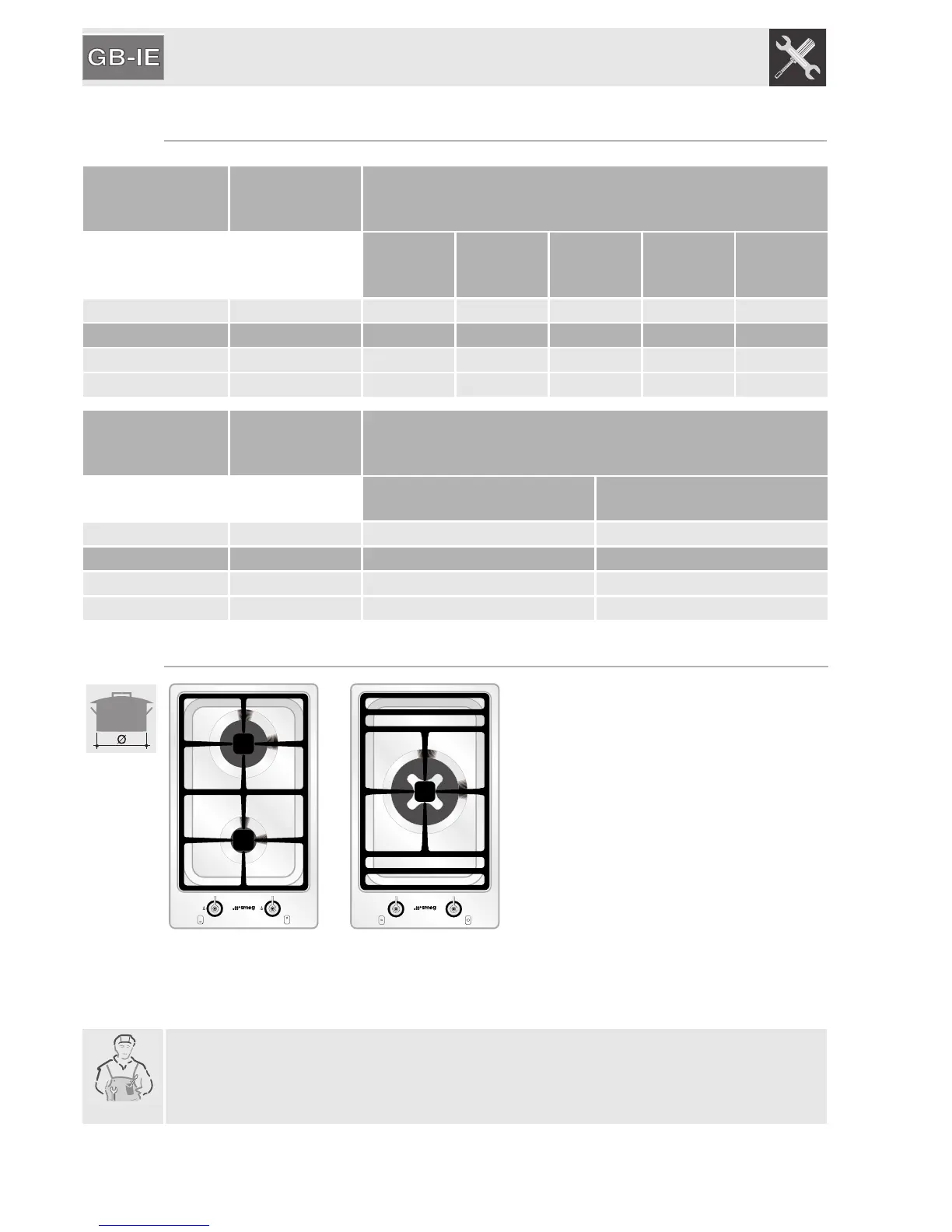 8.2 Burner and nozzle characteristics table