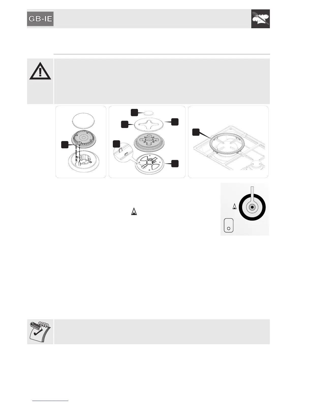 Before lighting the hob burners, check that the flame-spreader crowns are