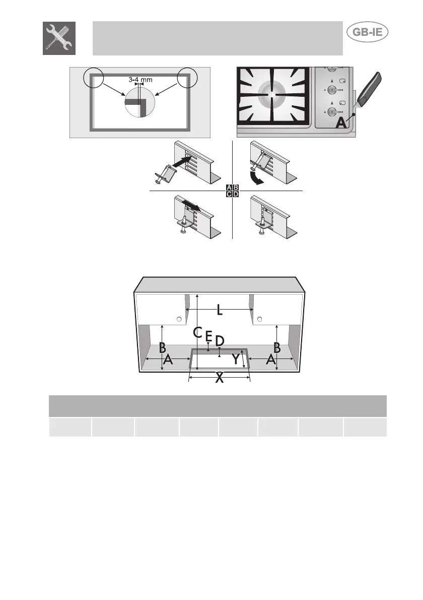 in the work-top and use the screws and fixing brackets (sequence