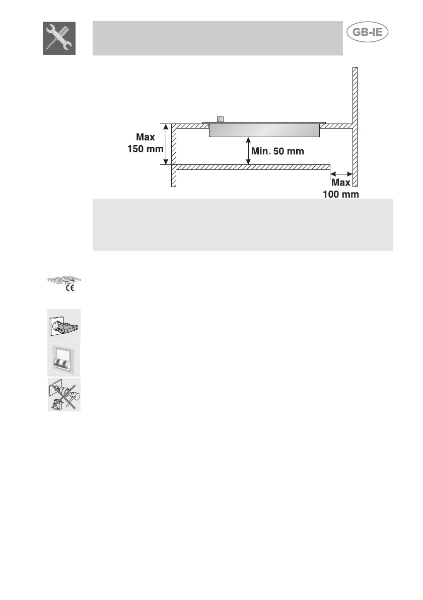 IMPORTANT: when installing the appliance above a cupboard, a dividing