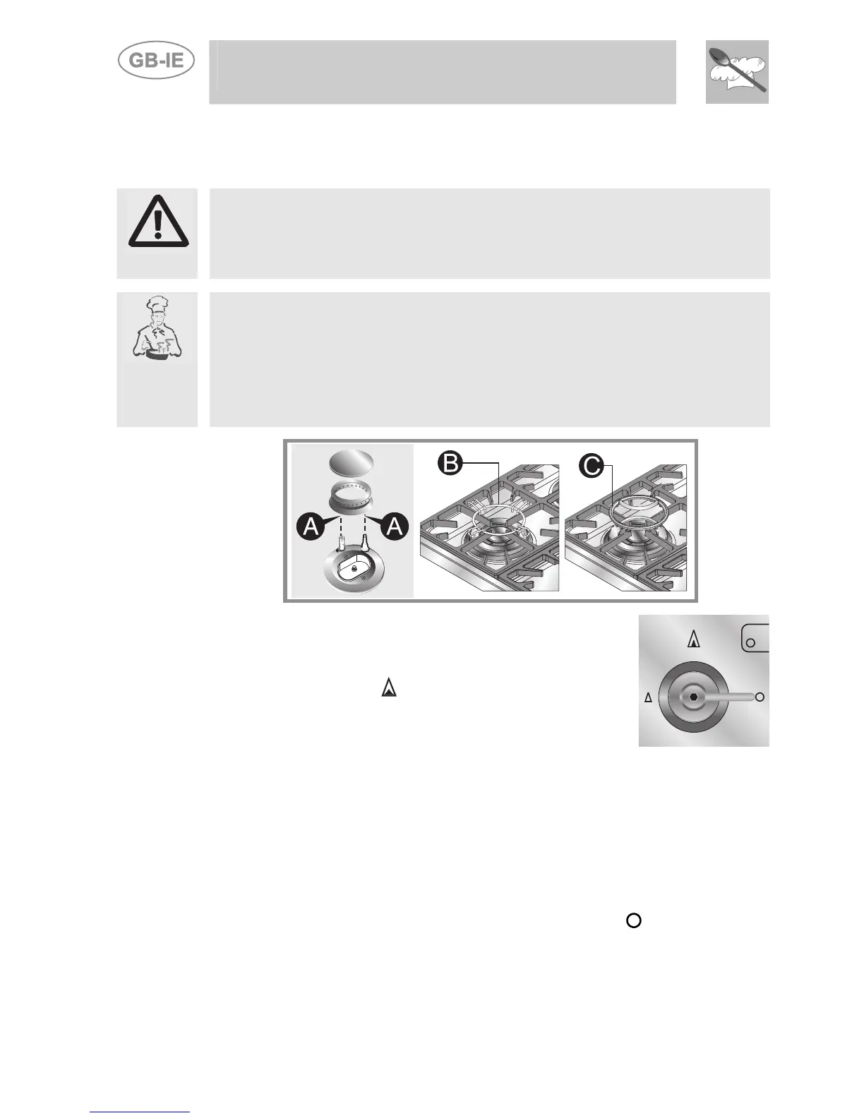 To prevent damage to the worktop, the hob is equipped with a raised grid