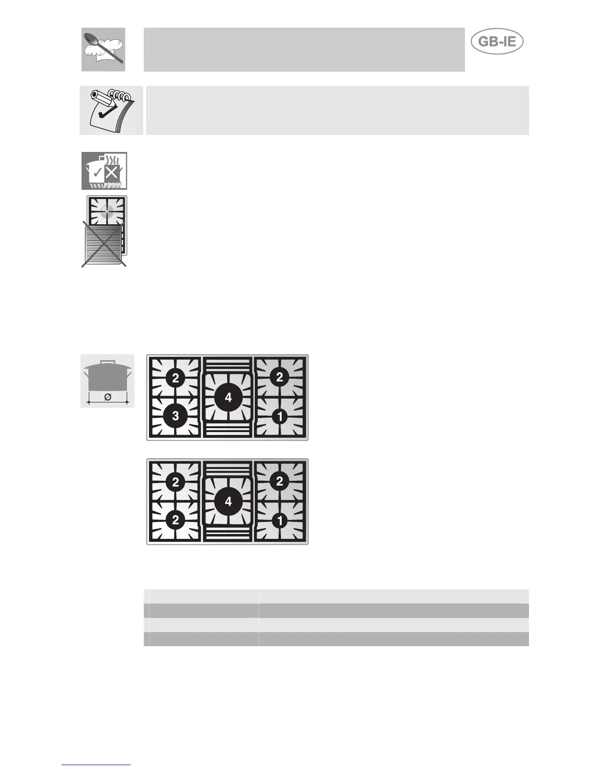 To avoid burns or damage to the worktop, all receptacles or griddle