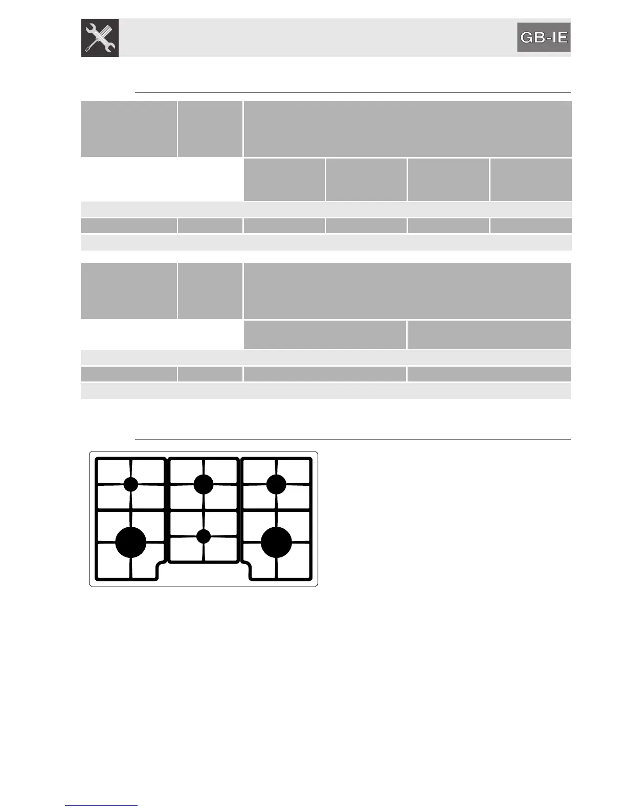 7.2 Burner and nozzle characteristics table