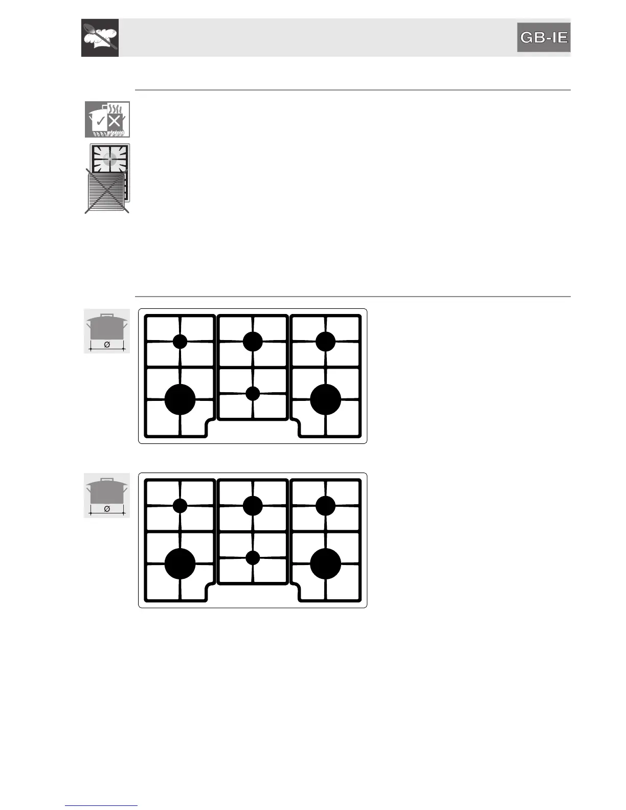 4.3.1 Cookware diameters with raised pan stand