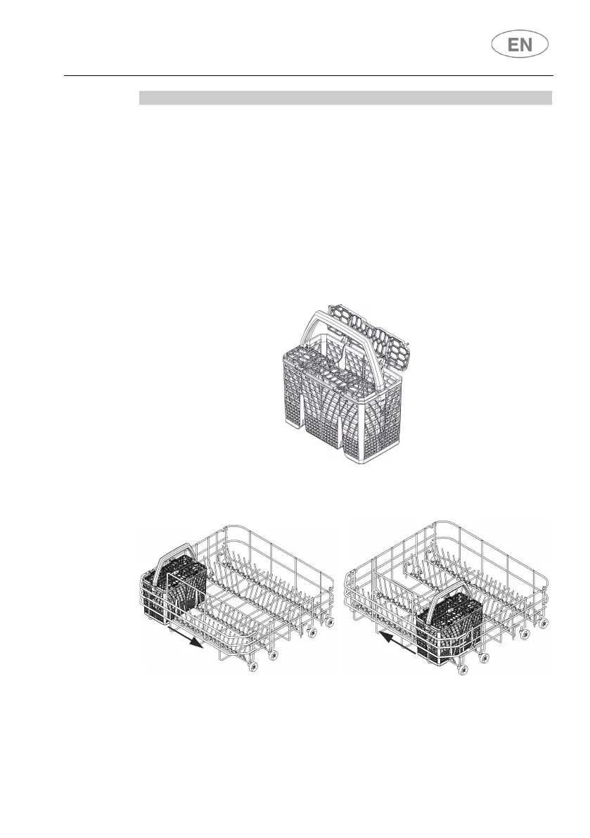 interfere with the upper spray arm. The cutlery should be arranged in the