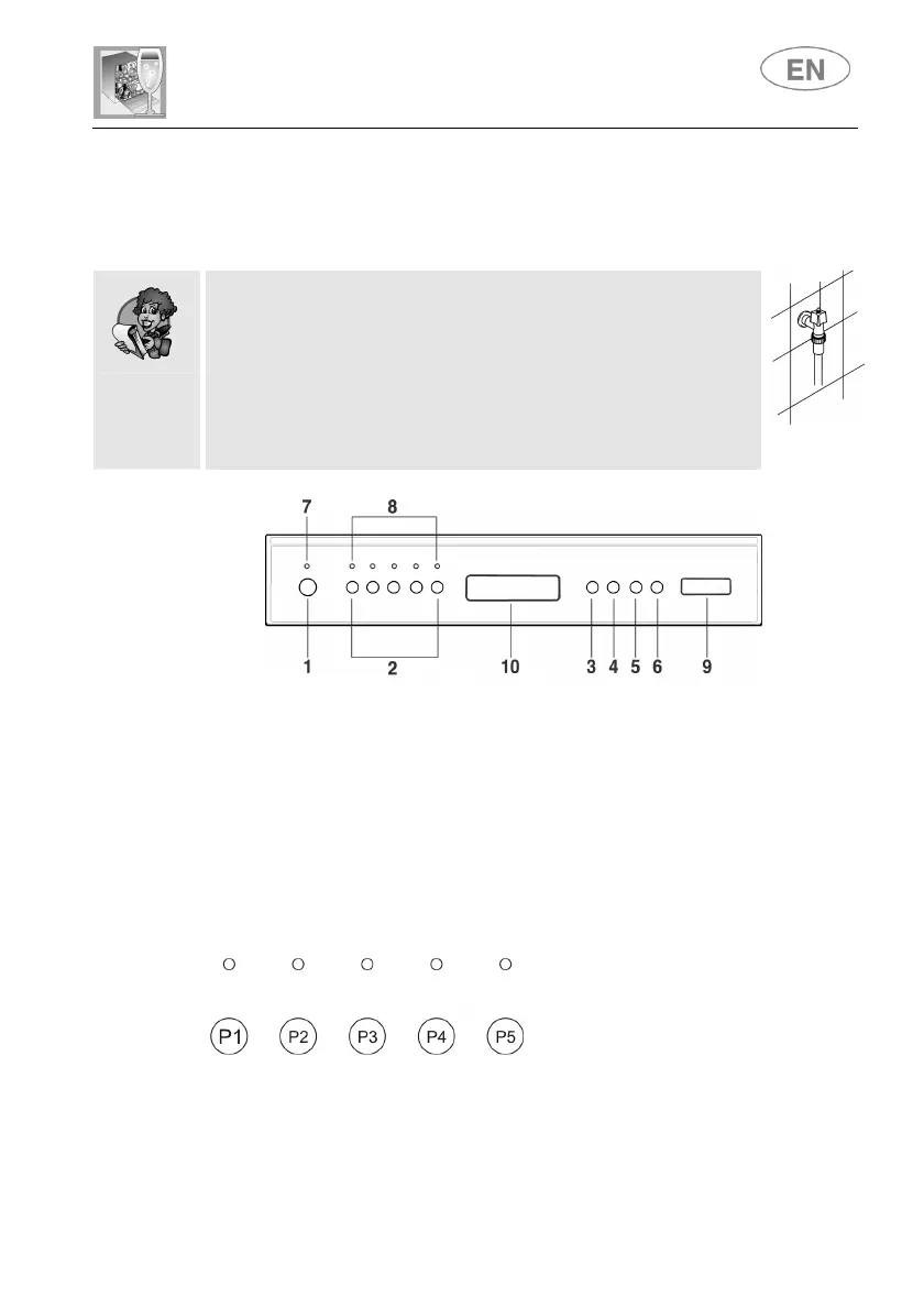 Pressing the ON/OFF button will start the dishwasher and will lit up the