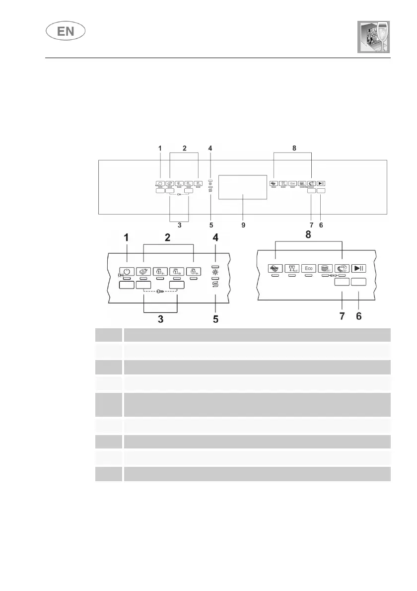 All the dishwasher controls are grouped on the front panel. Programming