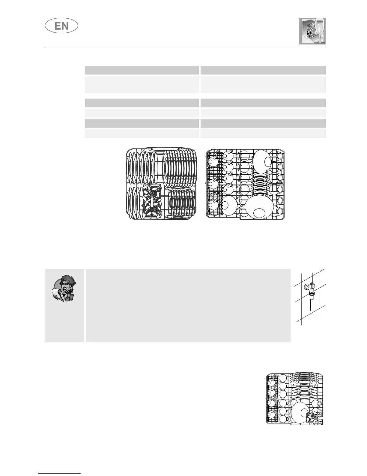 Rinse aid setting Depending on the model 3/4 or 4/6