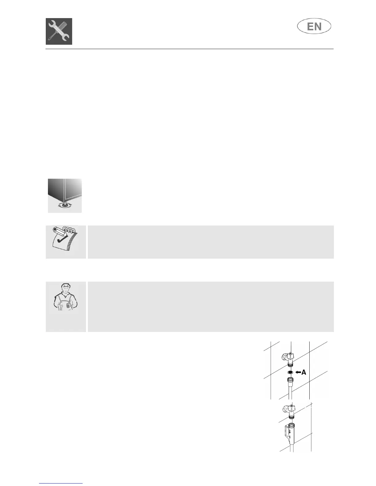 Level the appliance on the floor using its adjustable feet. This operation