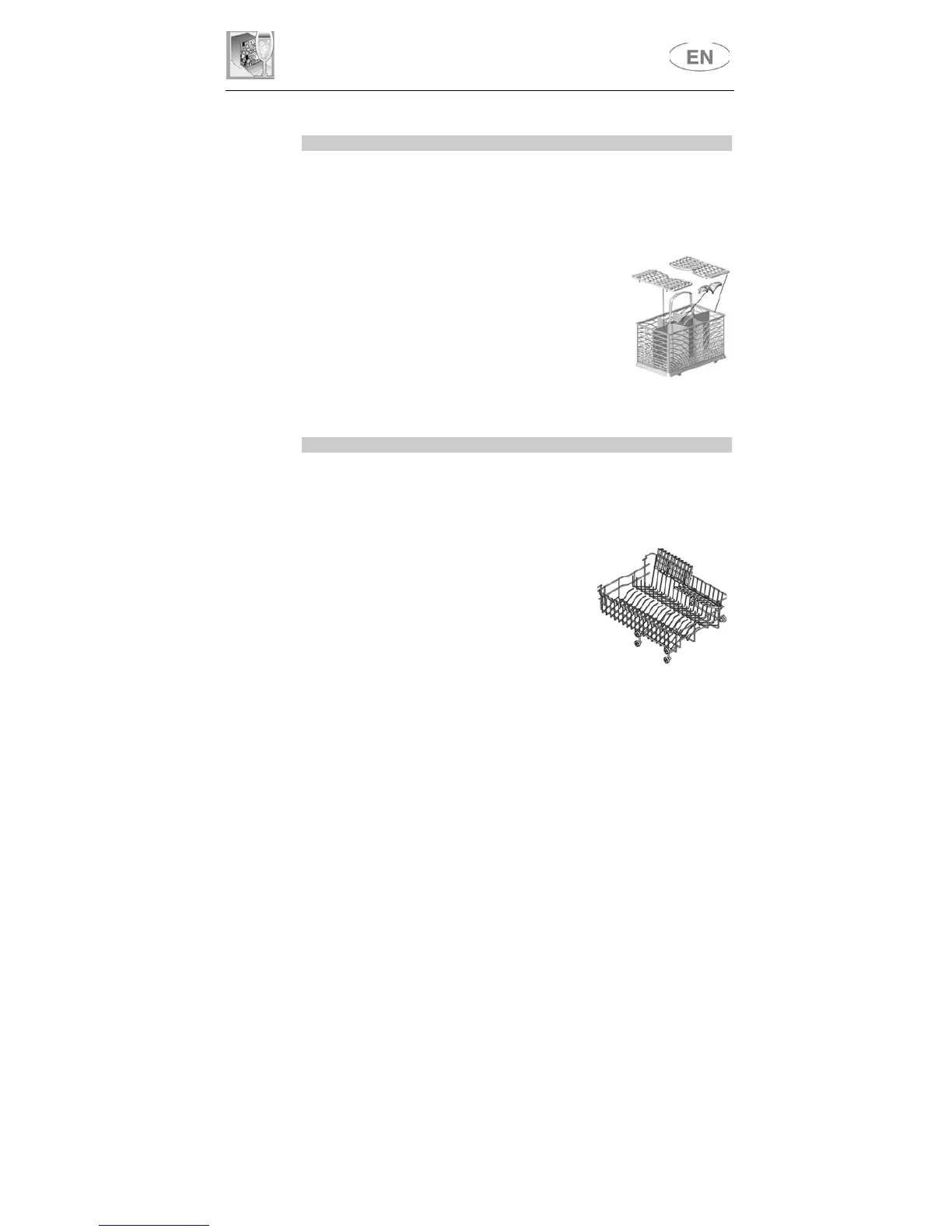 The basket has removable top grids into which items of cutlery can be