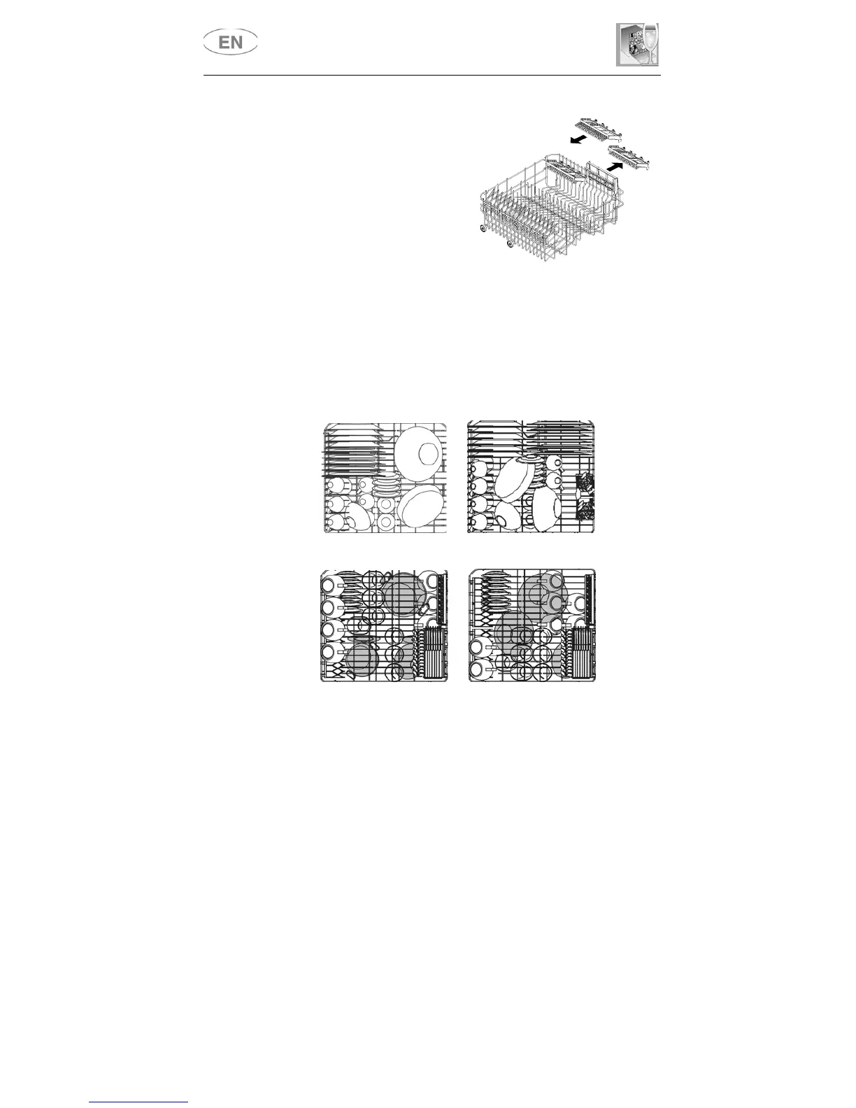 Load plates facing forward; cups, bowls etc. must always be facing