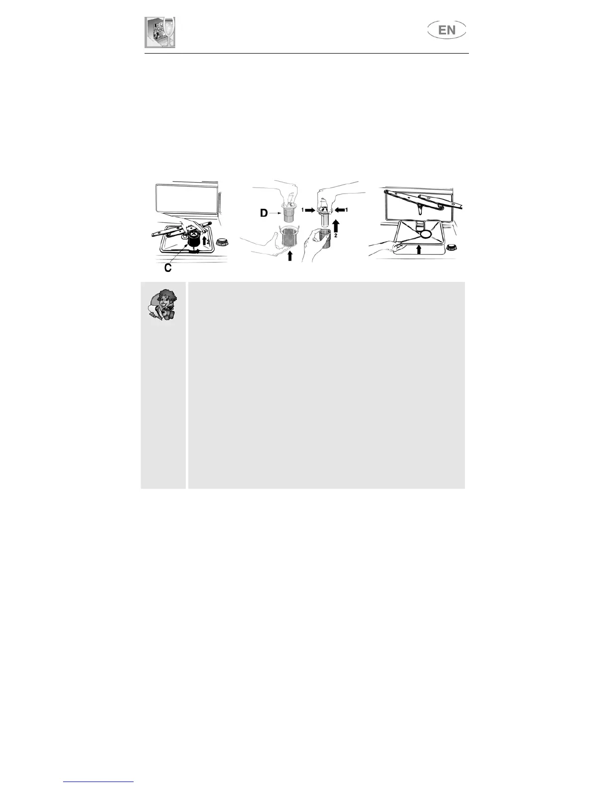 necessary, to clean it. To remove the filter, grip the tabs, turn them