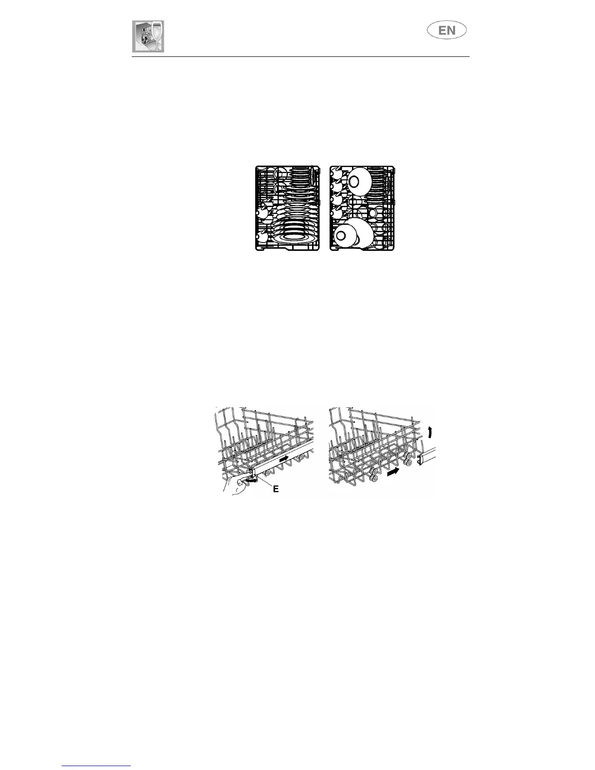 Load plates facing forward; cups, bowls etc. must always be facing