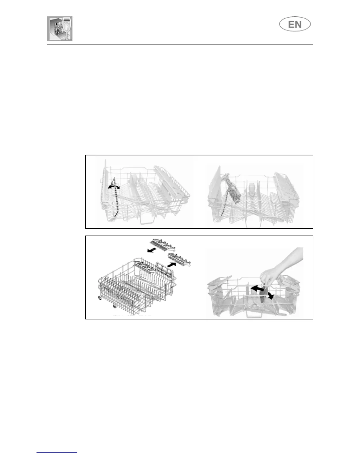 for teaspoons, pull out the sliding support. The racks can be