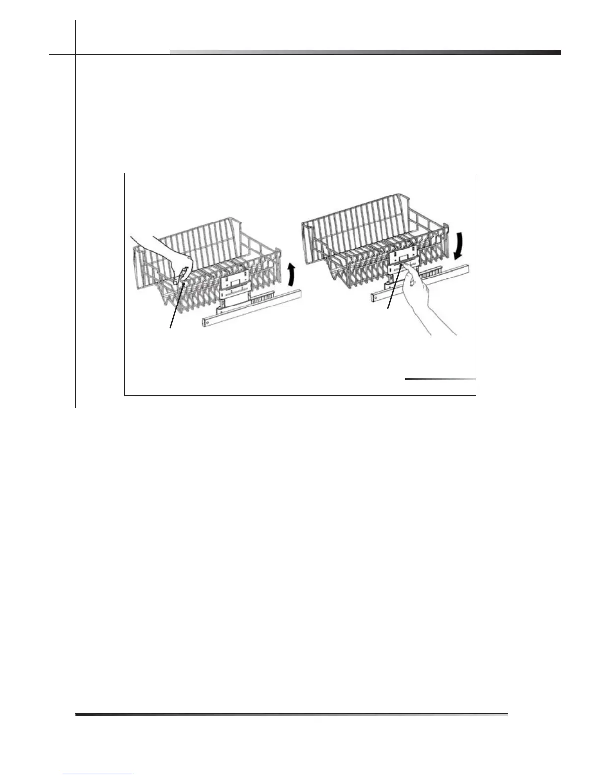 pull out the rack to its limit position and pull the right side upwards (ref. A