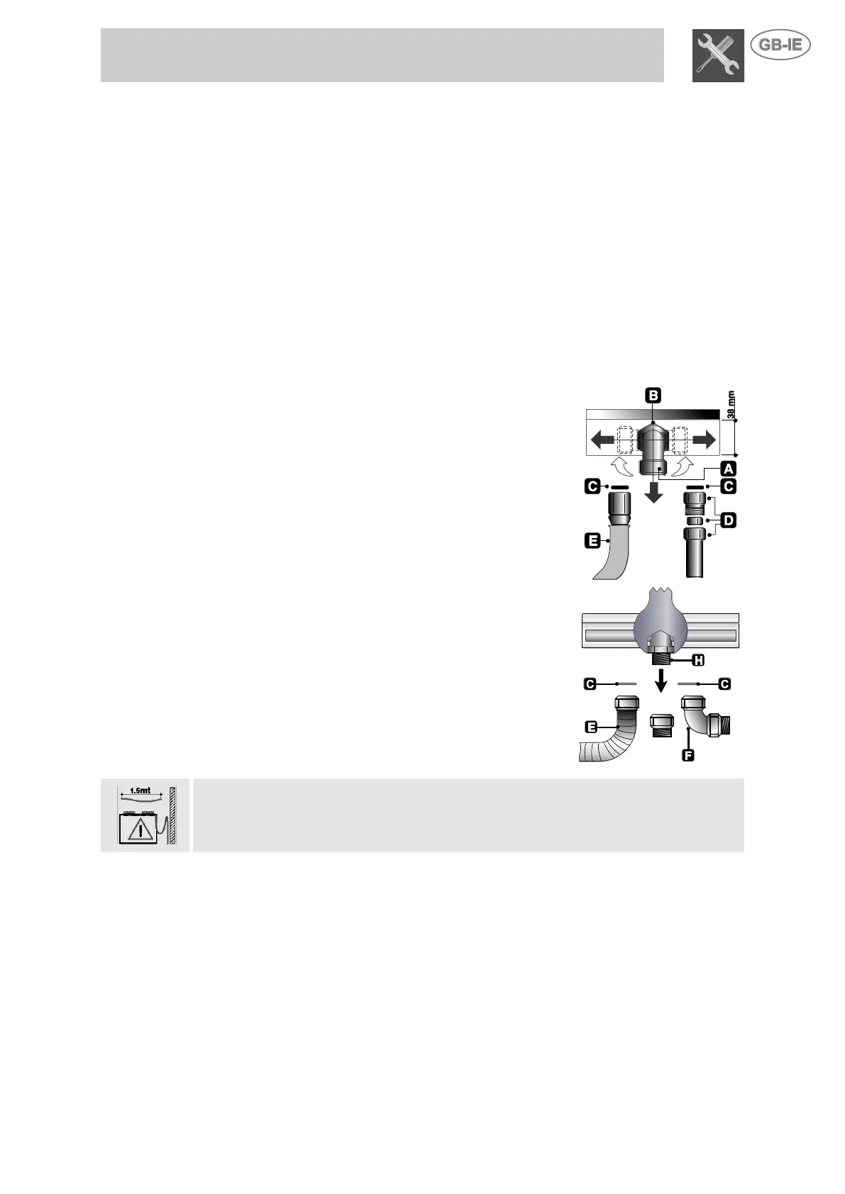 The flexible pipe has to be installed so that pipe length does not exceed 1.5 meters of