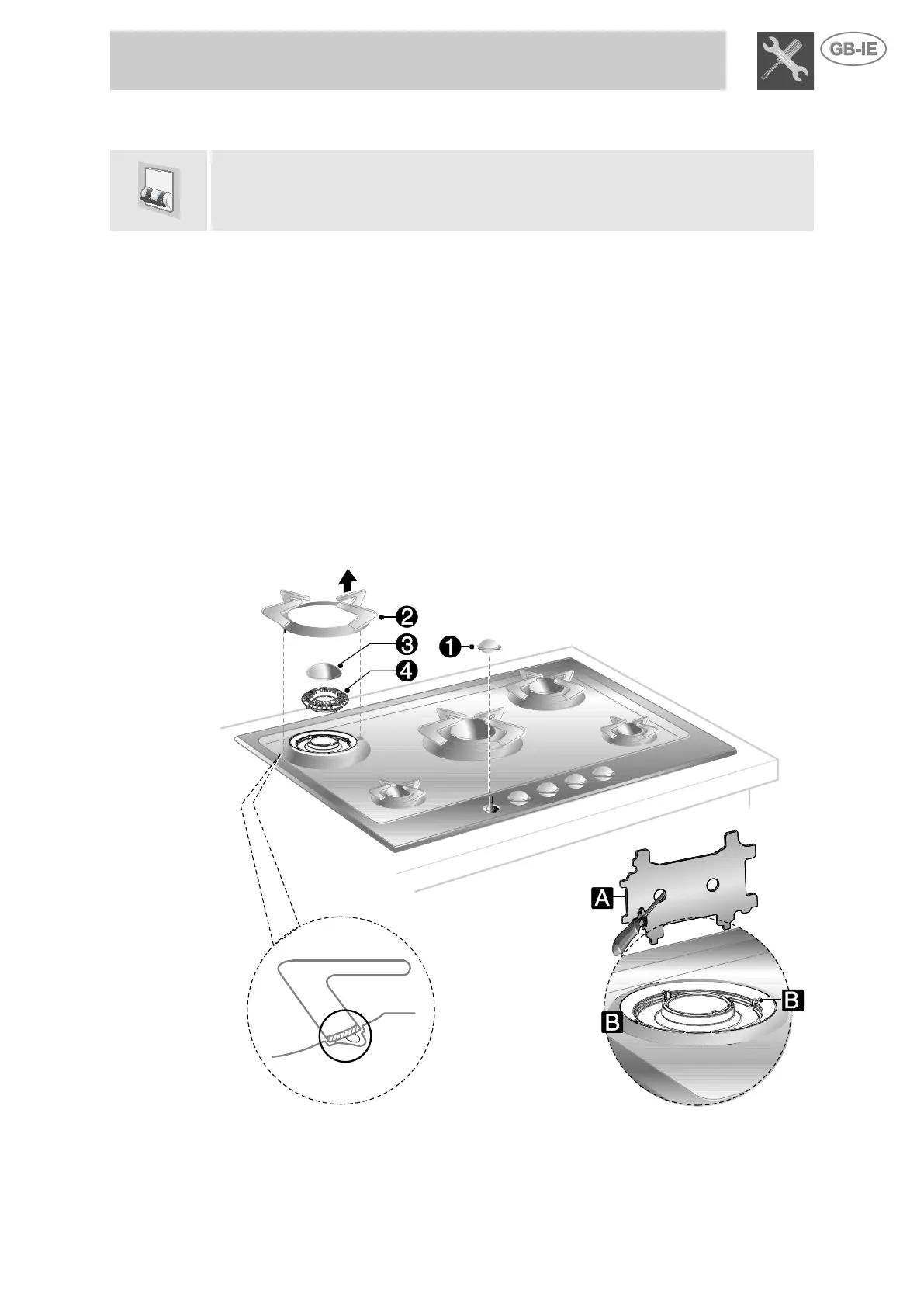 • with wrench A (supplied), open the bayonet clamps on the burner rings by levering