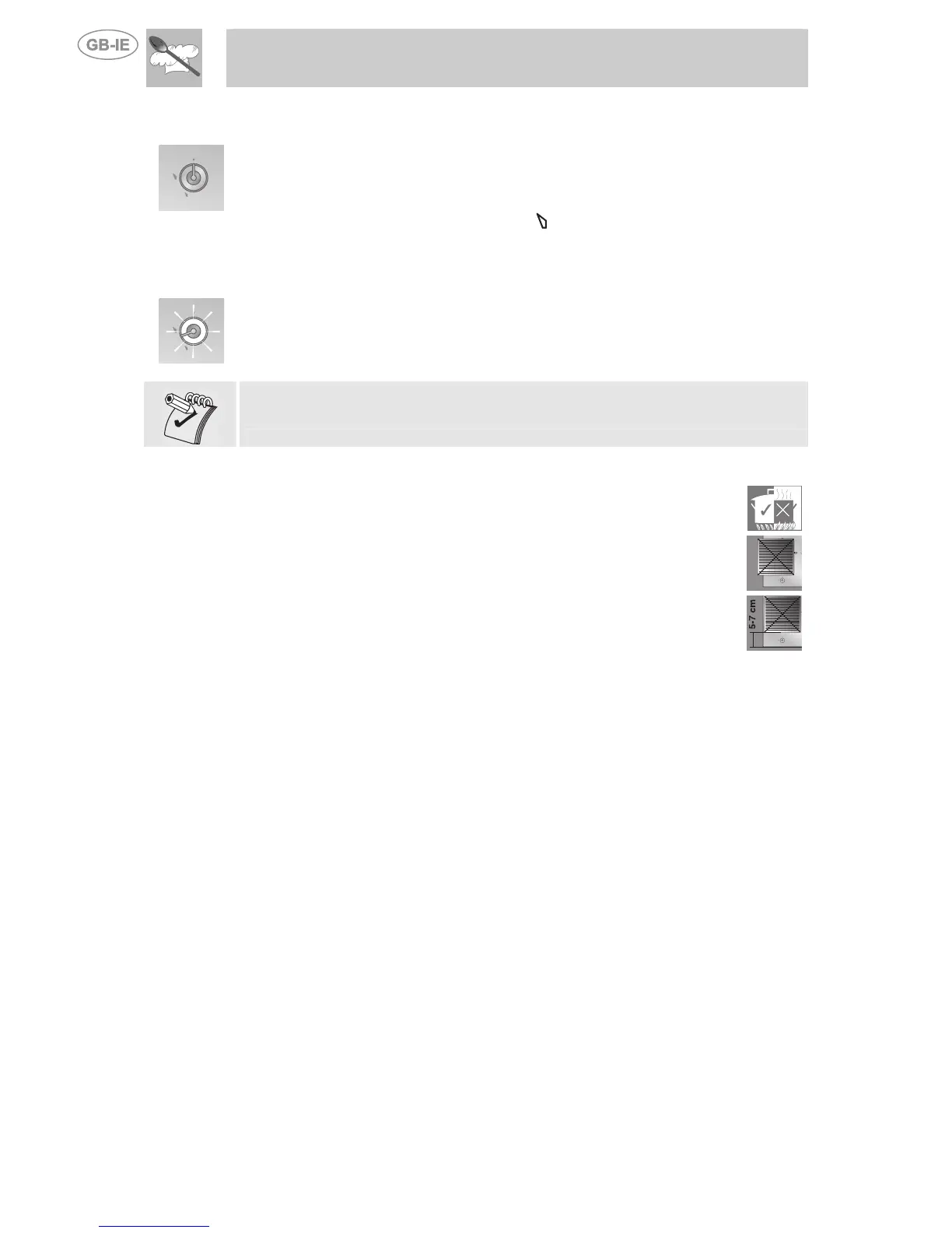 anti-clockwise to the minimum flame symbol , until the burner lights. Keep the knob