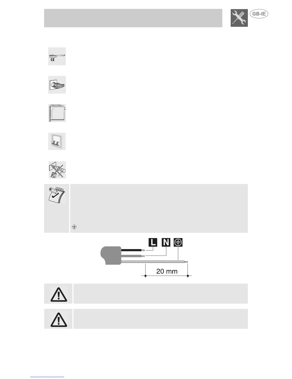 must be at least 20 mm longer at the end for connection to the appliance. Use only a type