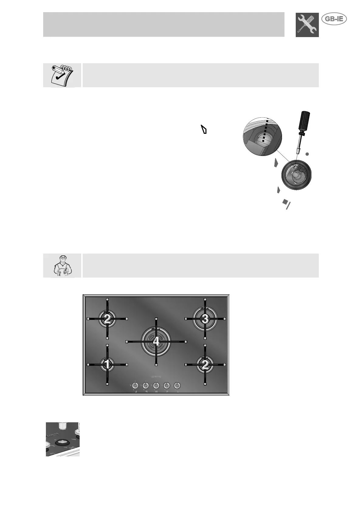 Fit the pan stands as described in point 7.1Fitting the pan stands.