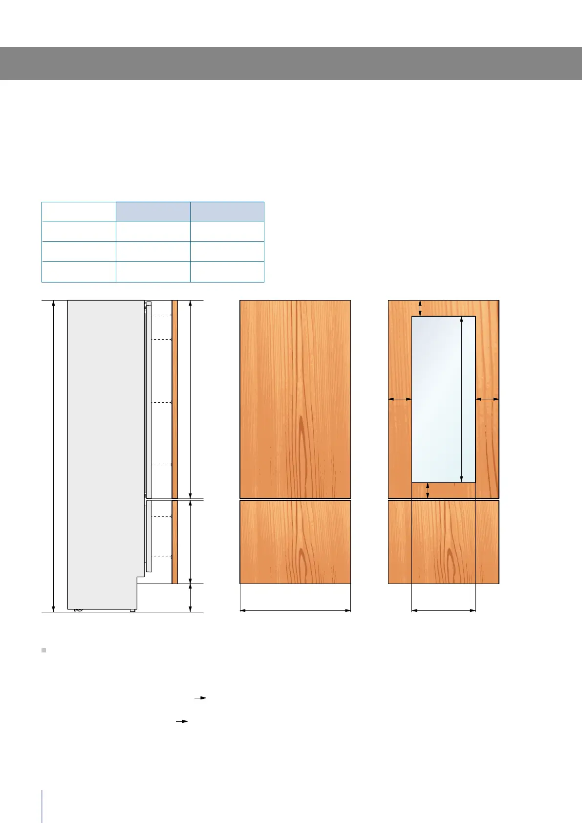 Integration in a kitchen column of total height 2160 mm (85”) and 150 mm (6”) kickplate.