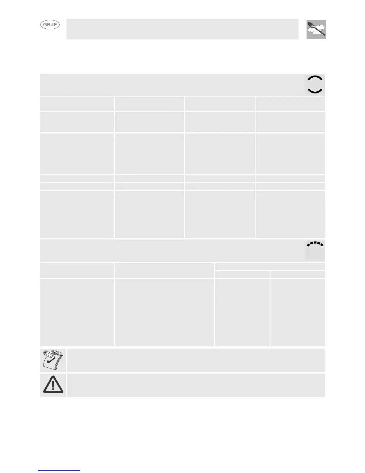 8.4 Recommended cooking tables