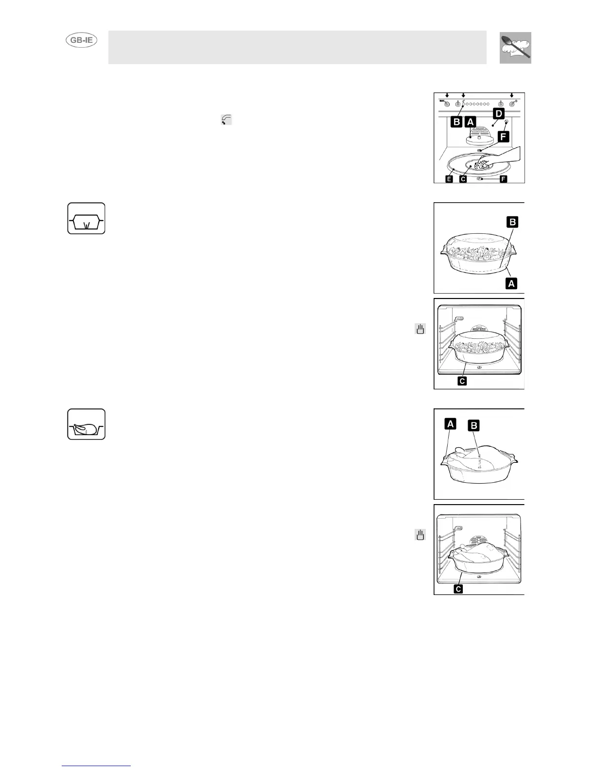 Put the pan in the oven, fitting it into the recess “C” in the bottom of the oven.