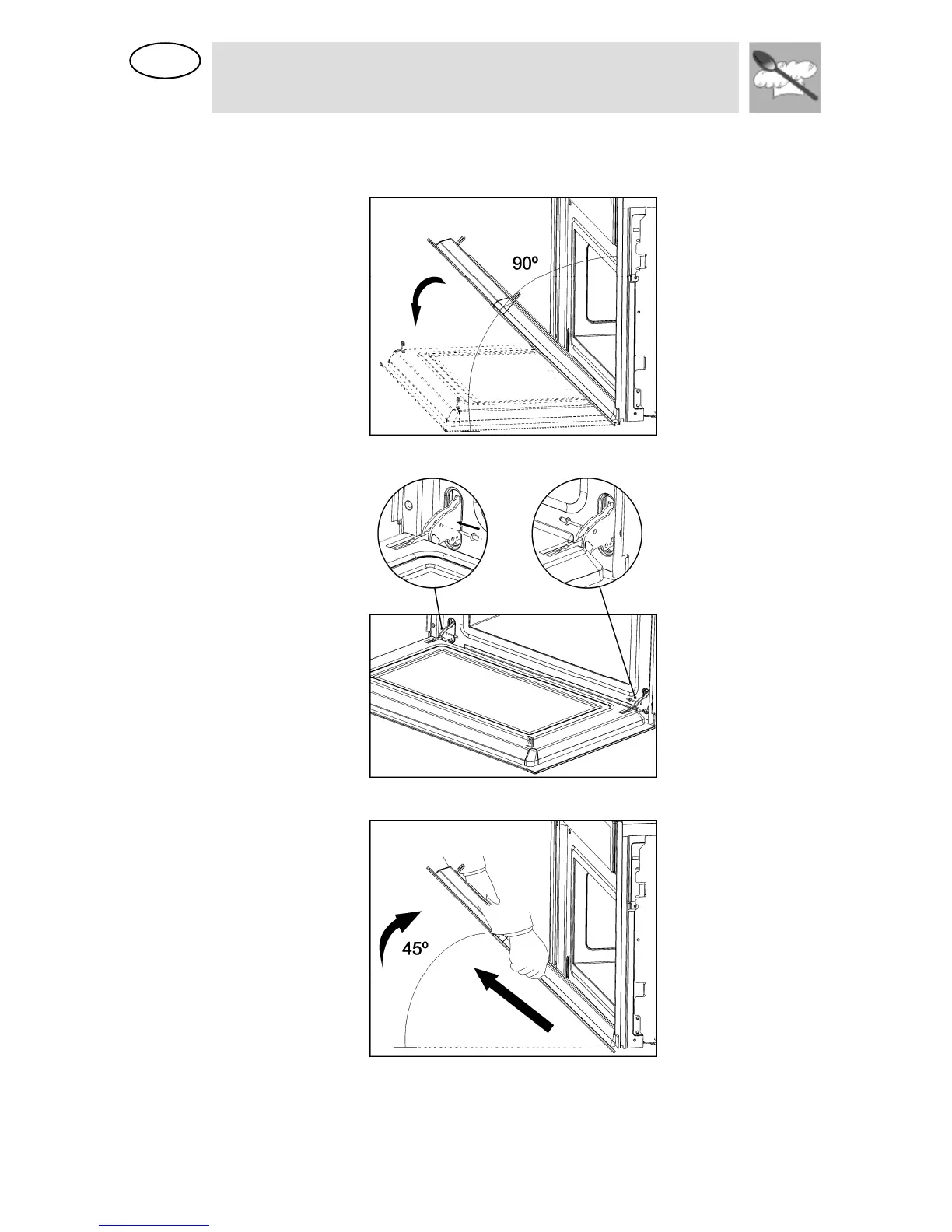 3. Close the appliance door just enough that it can be lifted out.