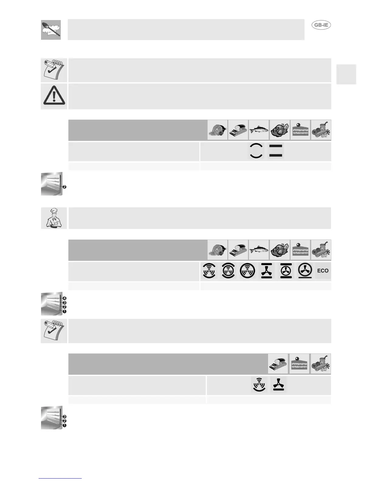 This system is suitable for cooking on several shelves, even with foods of different kinds (fish, meat, etc.)
