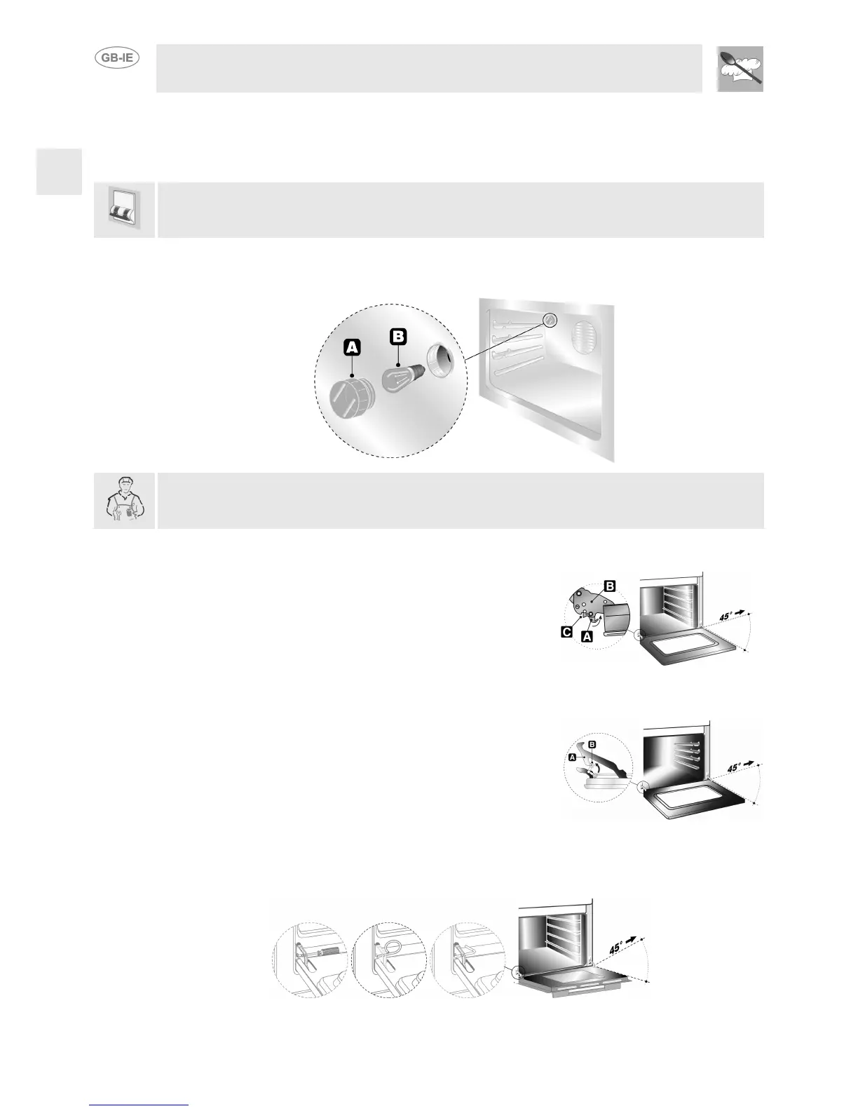 Use only light bulbs approved for ovens (T 300°C).