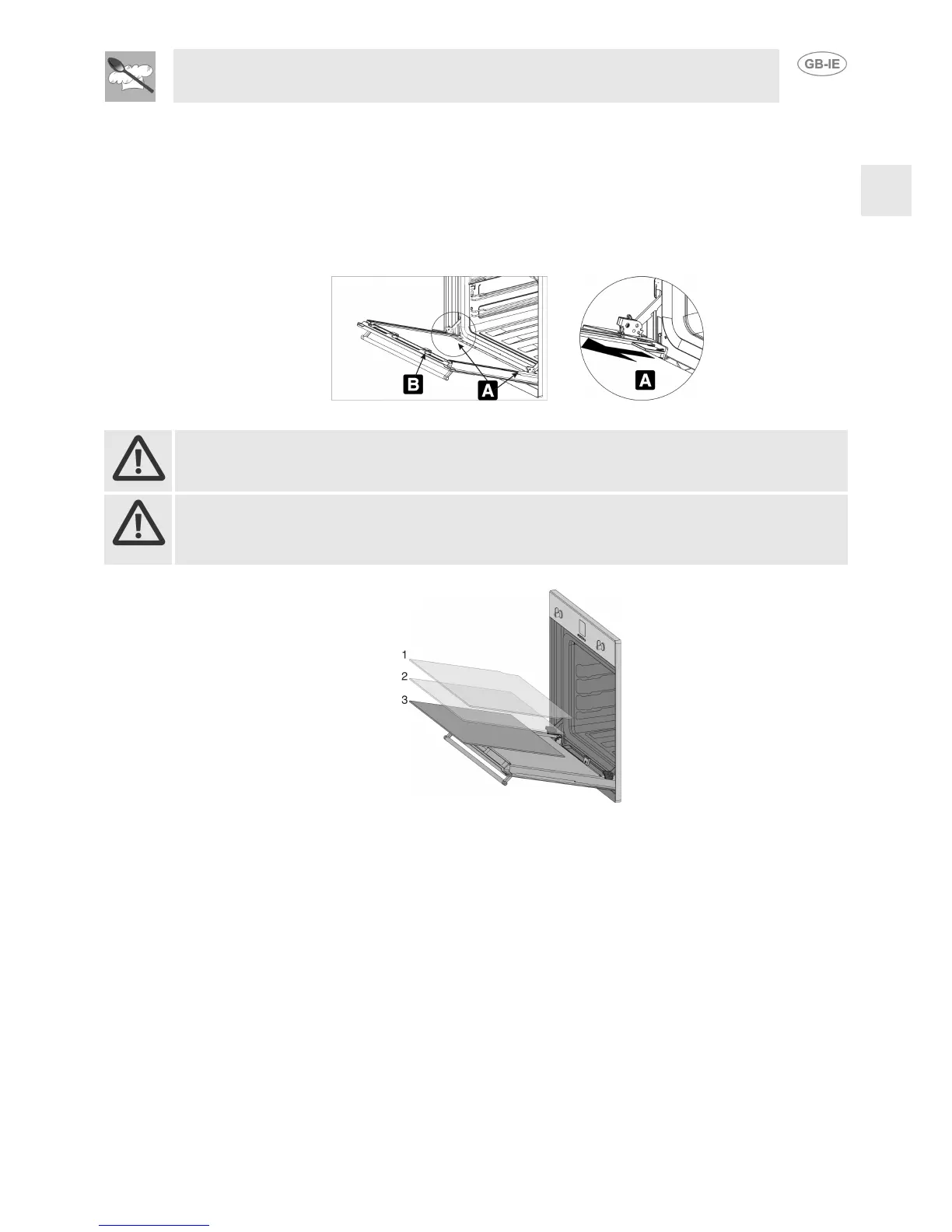 They should always be kept thoroughly clean. For easier cleaning, the door glazing can be fully removed