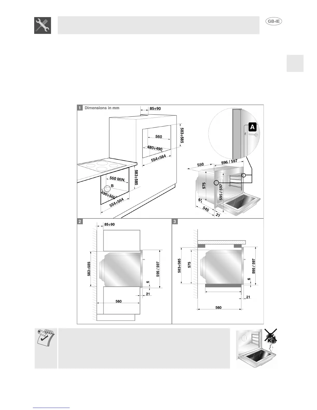 dimensions shown in figure 1-3. When installing under worktops incorporating combined hobs, a gap of