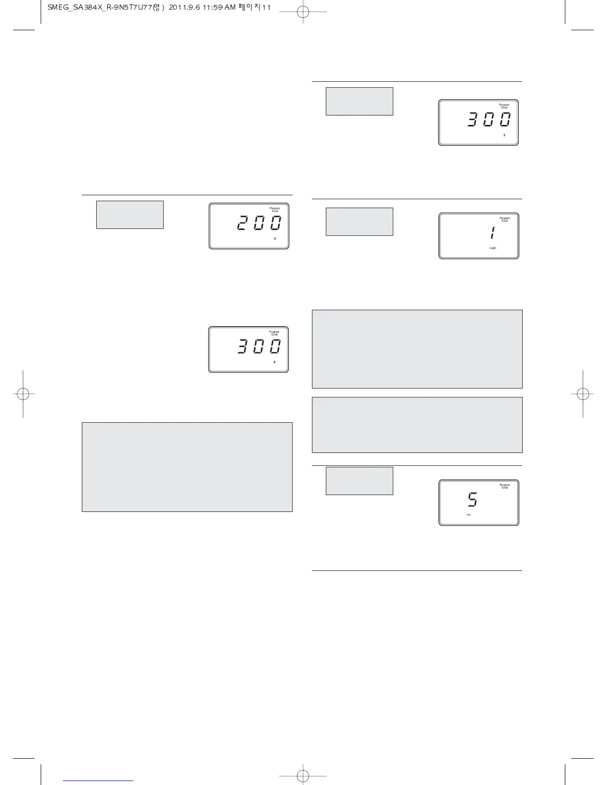 display is same as desired quantity to cook. (except
